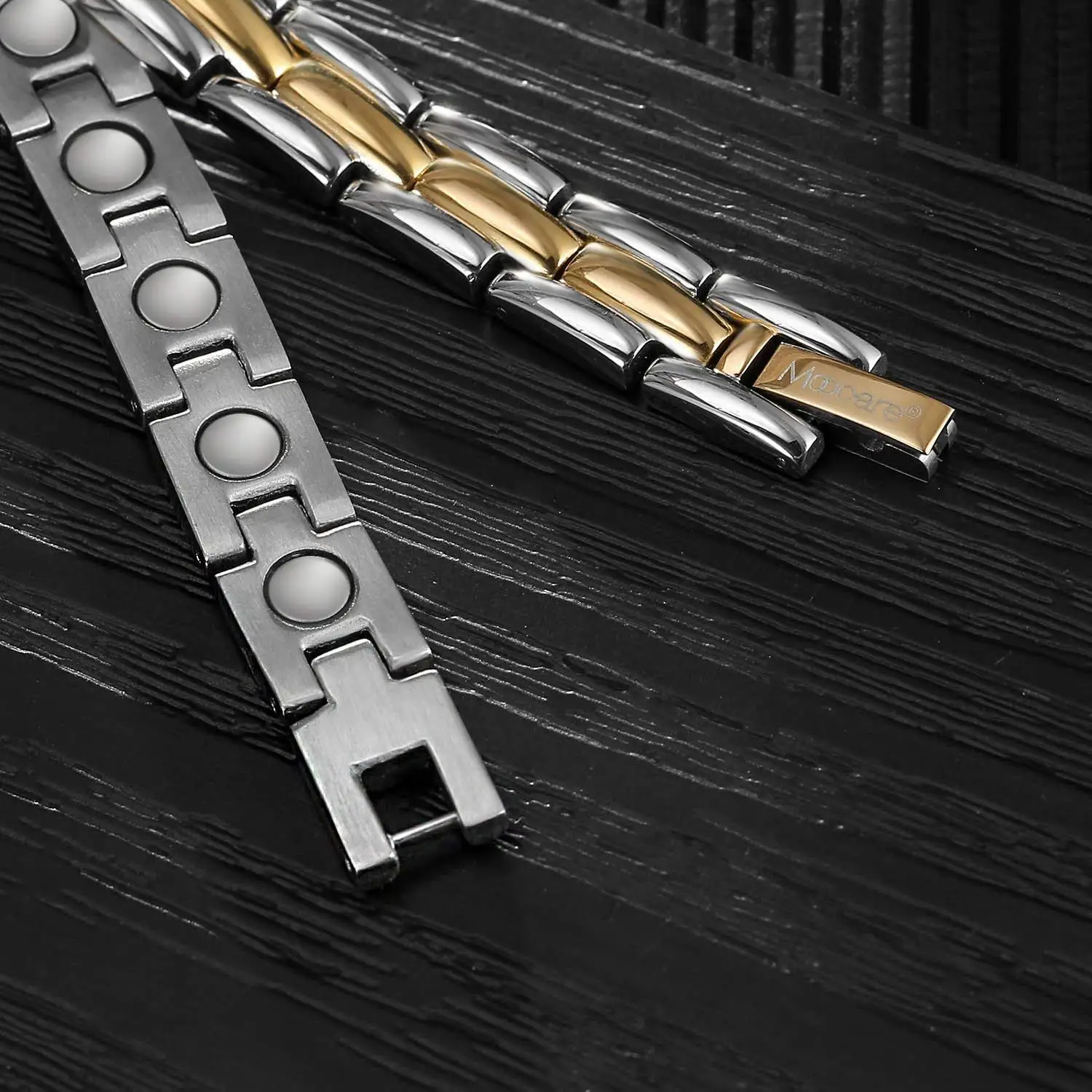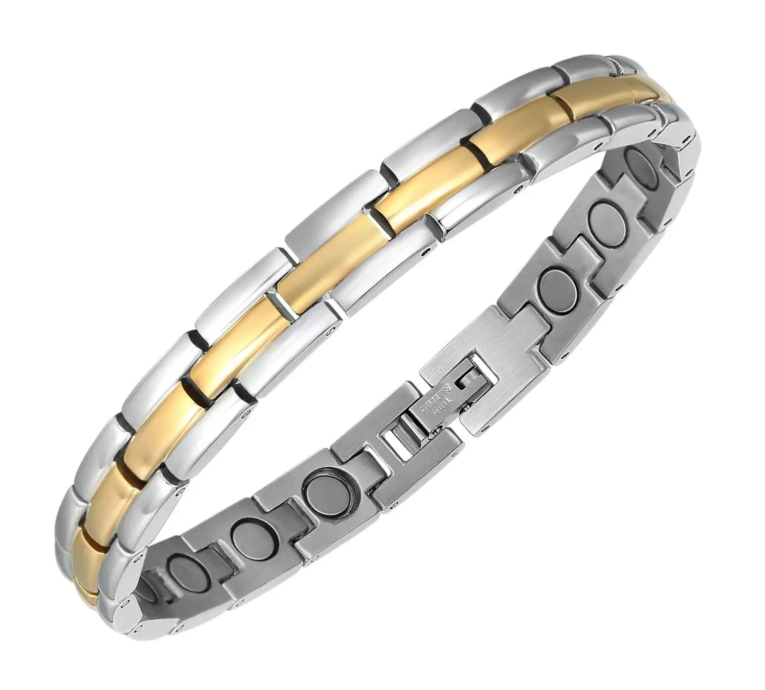 Moocare Two Tone Sleek Adjustable Link Stainless Steel Magnetic Golf Bracelet For Women And Men With Strong Fold-Over Clasp